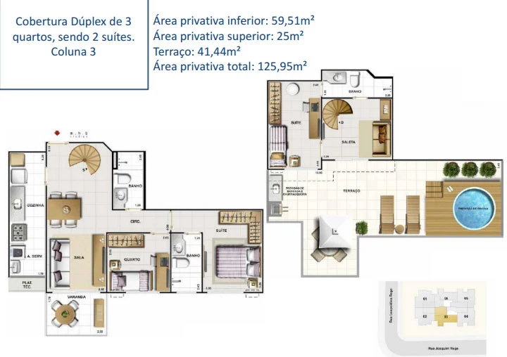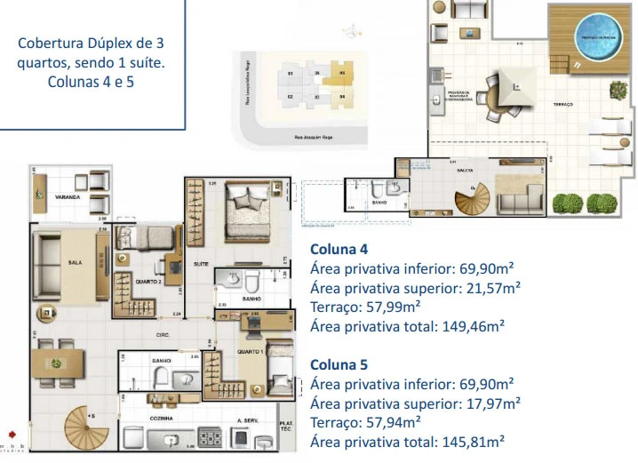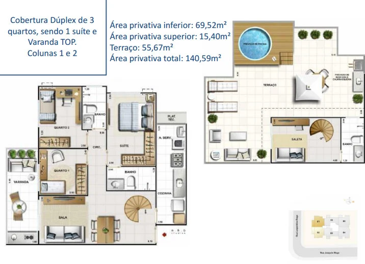 Coberturas de 2 e 3 quartos.